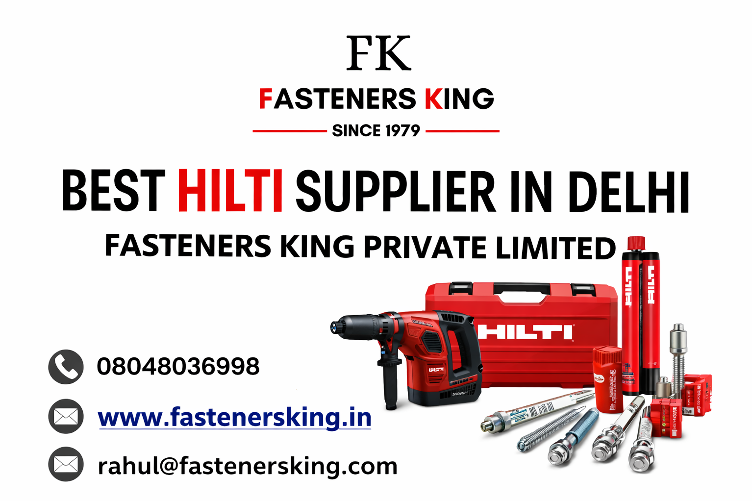 Choose Best Hilti Supplier in Delhi β Fasteners King Private Limited for quality, reliability, and industry-leading solutions.